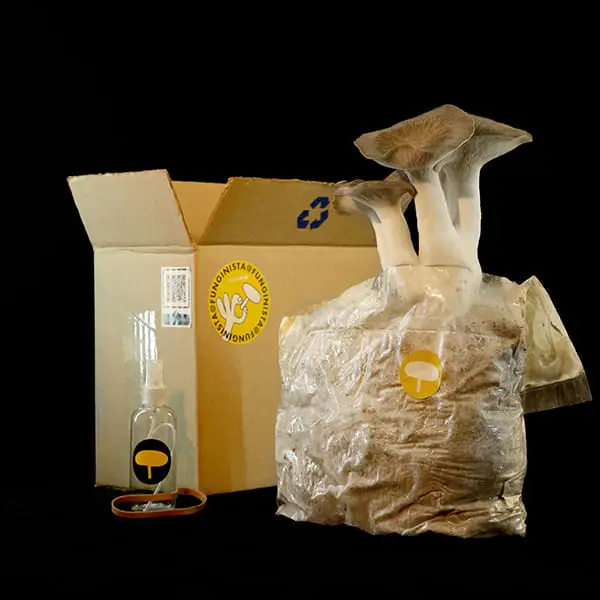 Bloque de cultivo automático listo para fructificar y cultivar tus propios hongos exóticos gourmet en casa.