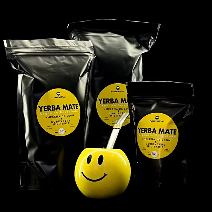Nuestra yerba mate combina la vitalidad de la hoja orgánica con el poder de la Melena de León (Lion’s Mane) y el impulso del Cordyceps Militaris, dos hongos adaptógenos reconocidos por mejorar la concentración, fortalecer el sistema inmune y aumentar tu rendimiento físico y mental.